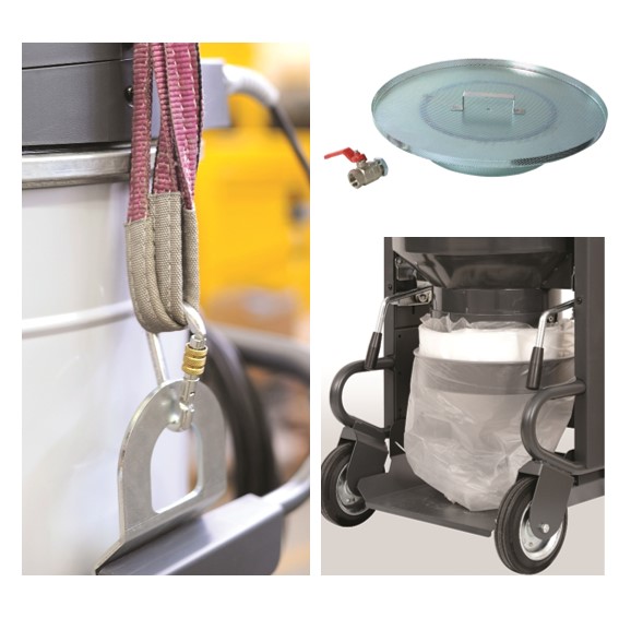 鋭利な金属片や液体等の混合物を回収する際に、フィルターや本体を保護するためのトラップやセパレーター等を展開。また、吊り上げ用の吊り輪の追加等、細かい要望に応じた豊富な追加オプションを用意しております。